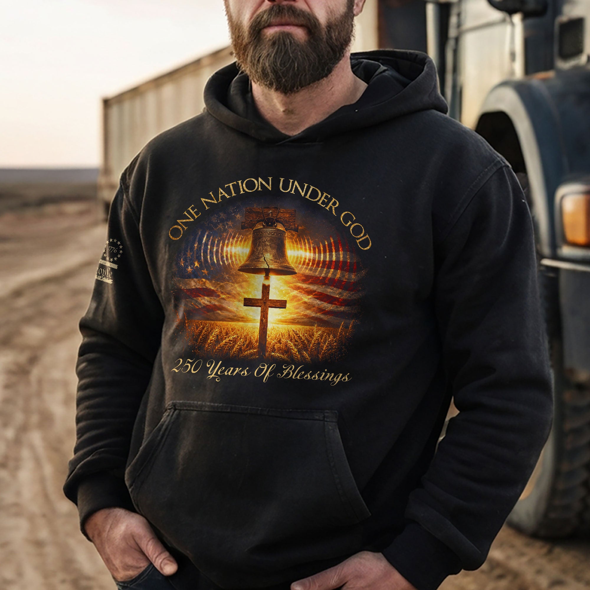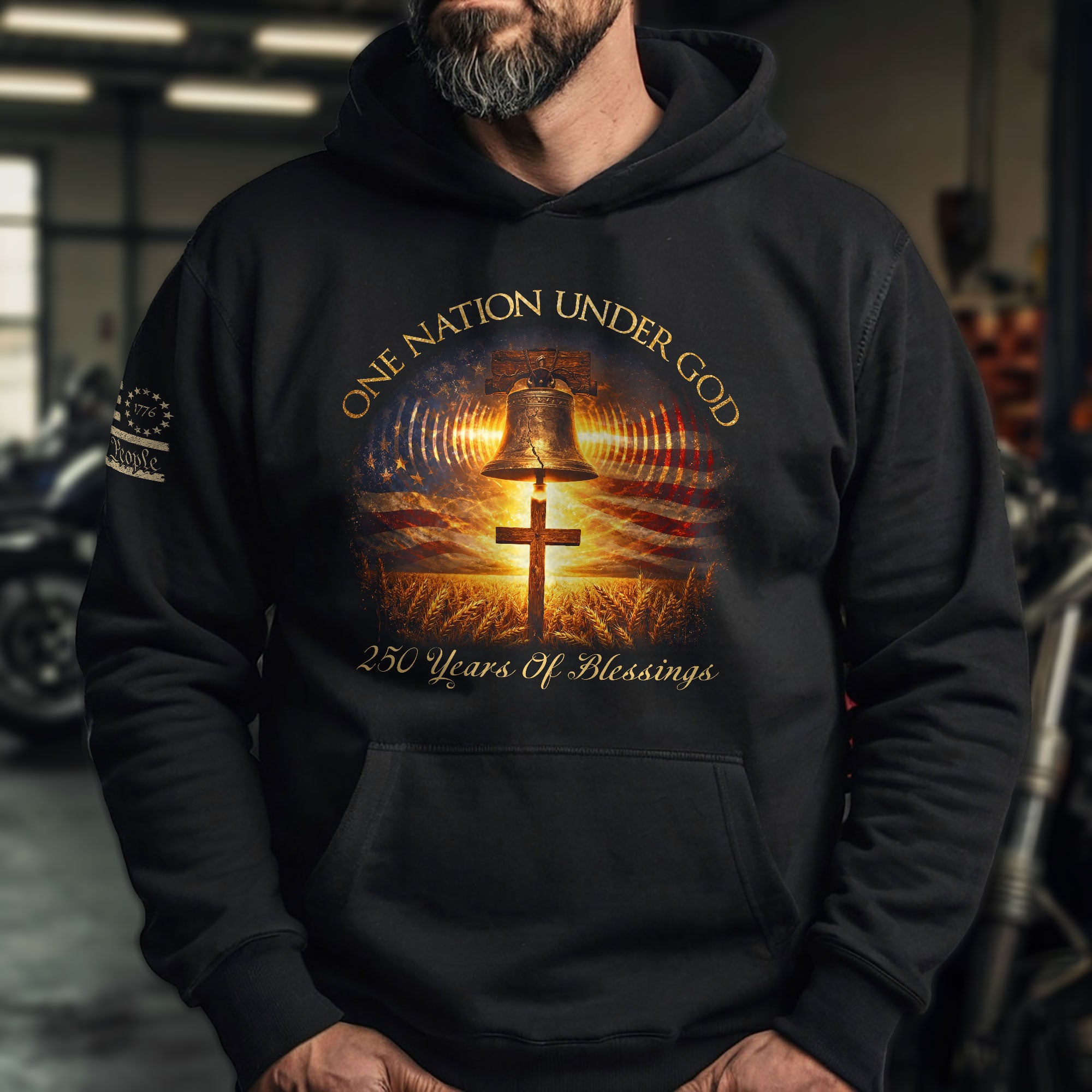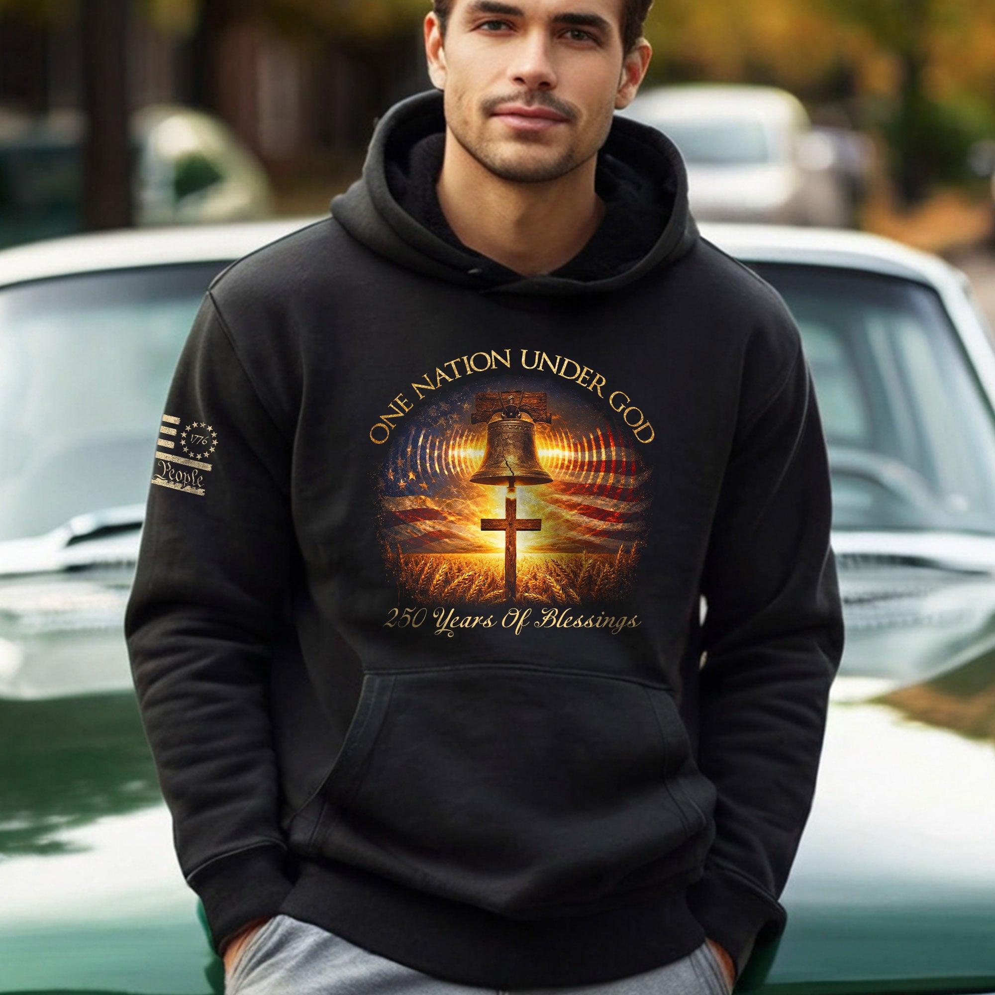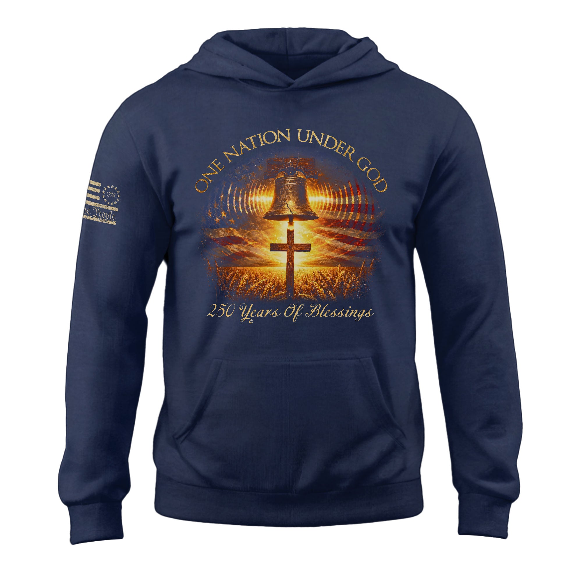 America 250th Anniversary Hoodie 1776-2026 Liberty Bell Cross One Nation Under God Men’s