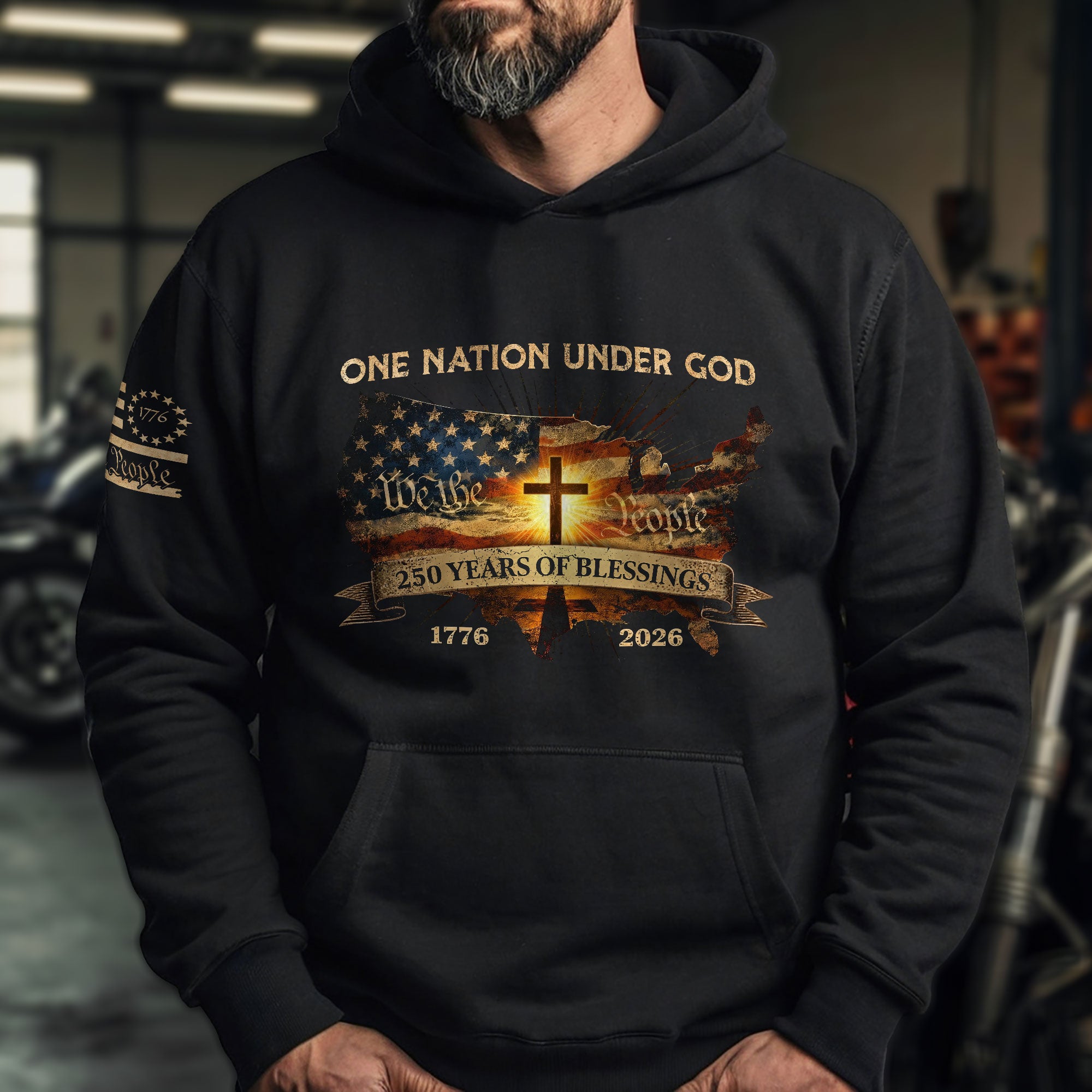 America 250th Anniversary Hoodie 1776-2026 USA Map Christian Cross One Nation Under God