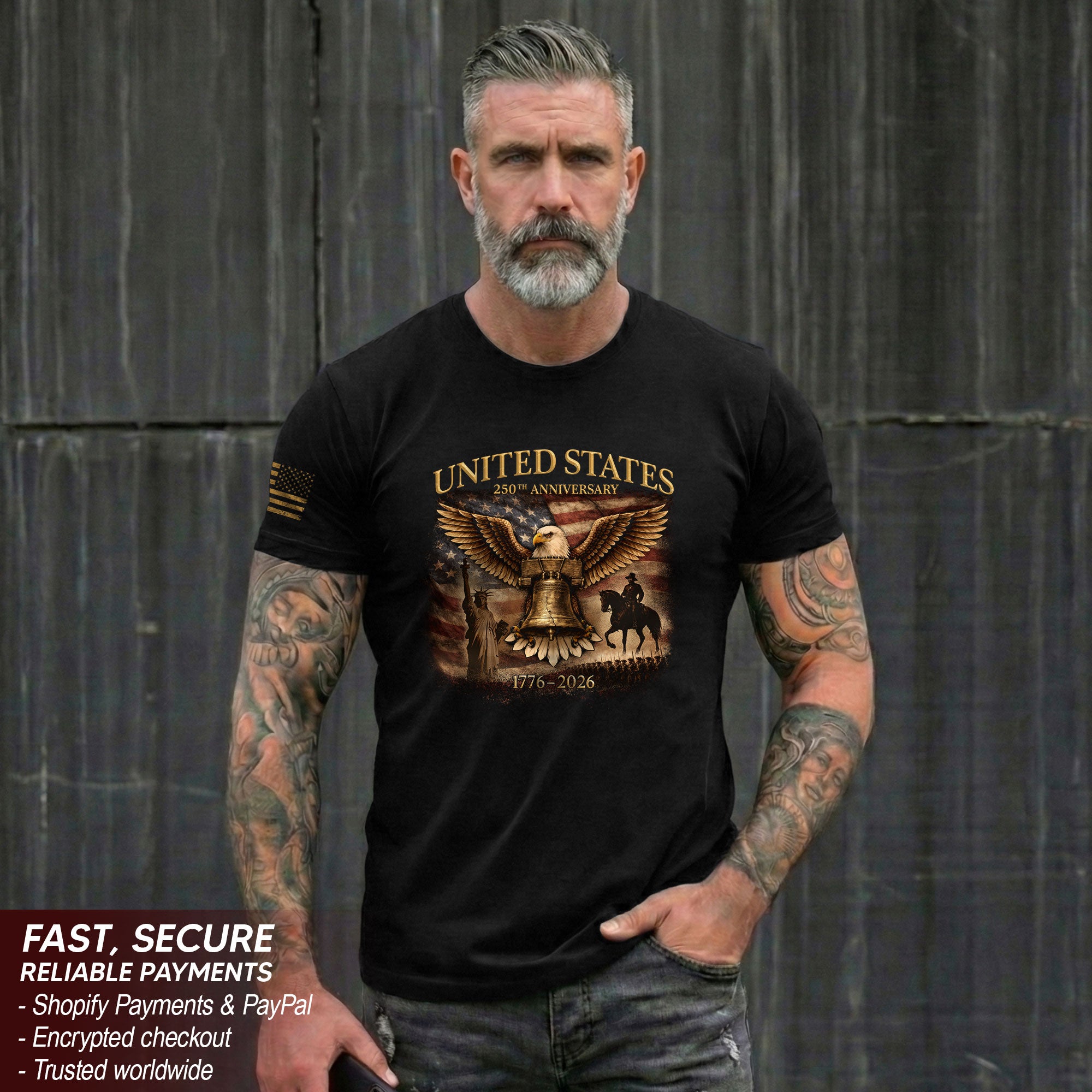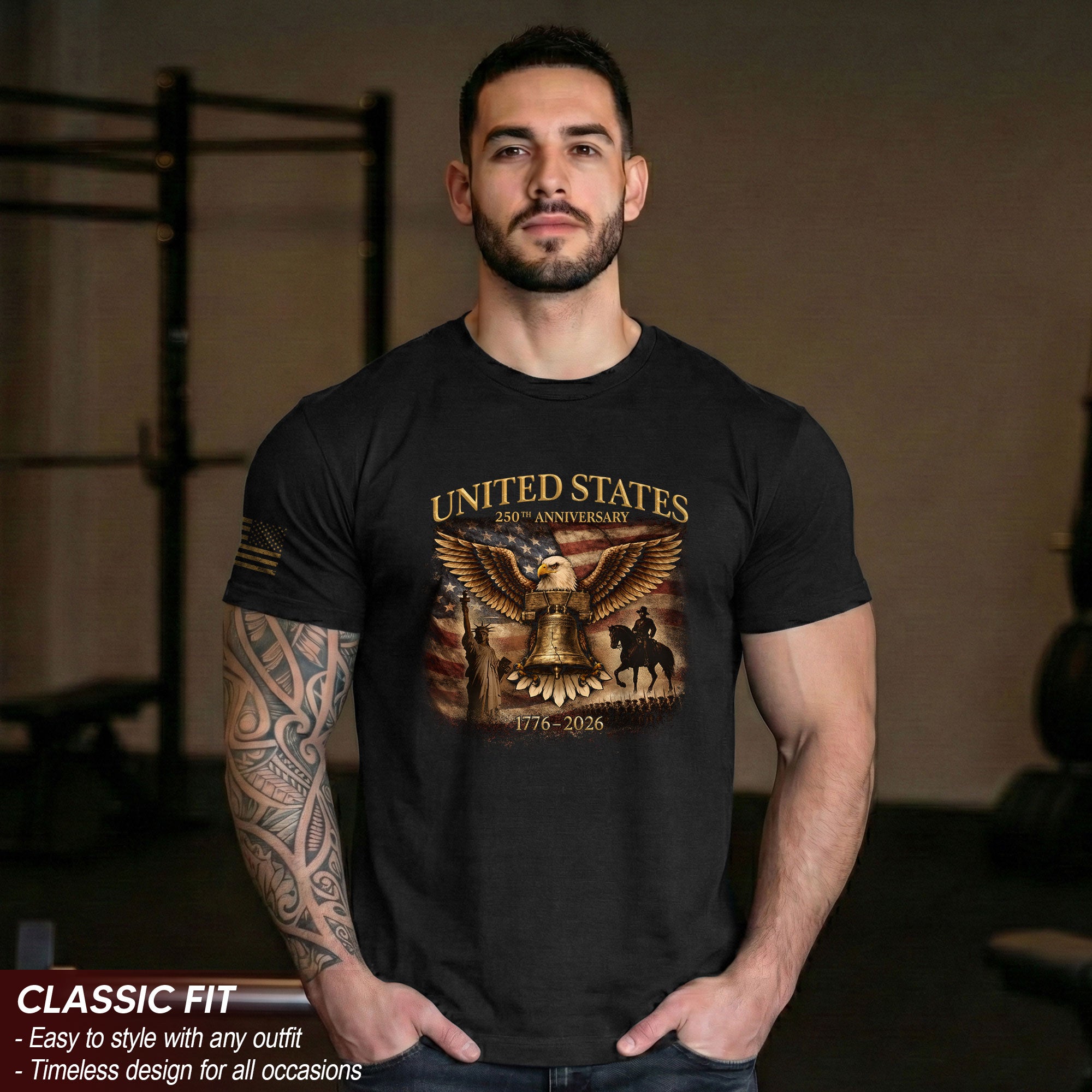 USA 250th Anniversary T-Shirt 1776-2026 Liberty Bell Eagle Patriotic Design