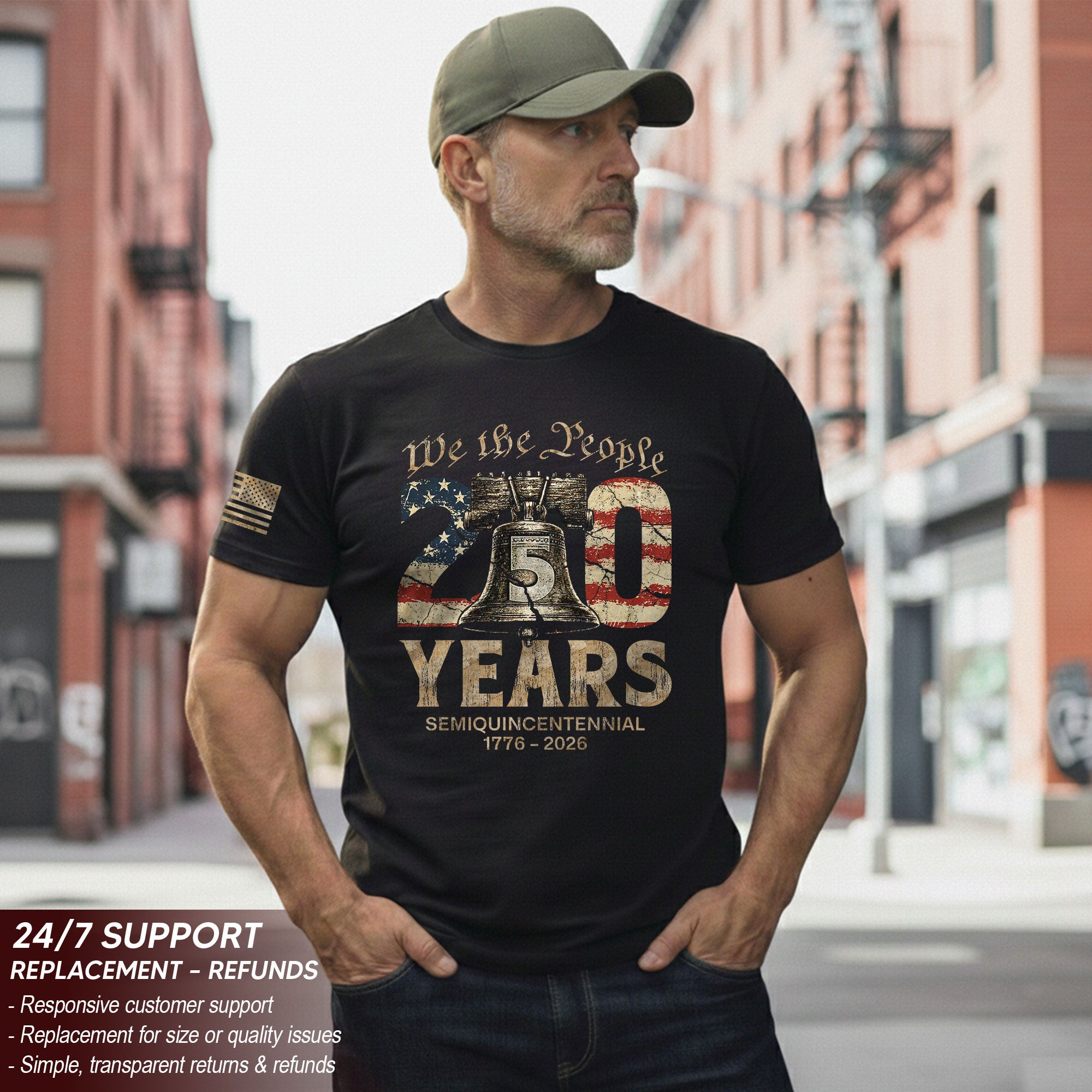 Celebrate America’s 250th anniversary with this patriotic T-shirt for men, featuring the iconic Liberty Bell and ‘We The People’ design. Crafted from premium, soft cotton for all-day comfort, this bold yet clean graphic tee honors the historic roots of freedom from 1776 to 2026. Perfect for Independence Day celebrations, barbecues, veterans’ events, or everyday wear showing national pride. Available in multiple sizes for a relaxed fit. Machine washable and durable for long-lasting wear. Embrace timeless American spirit with this essential patriotic apparel.